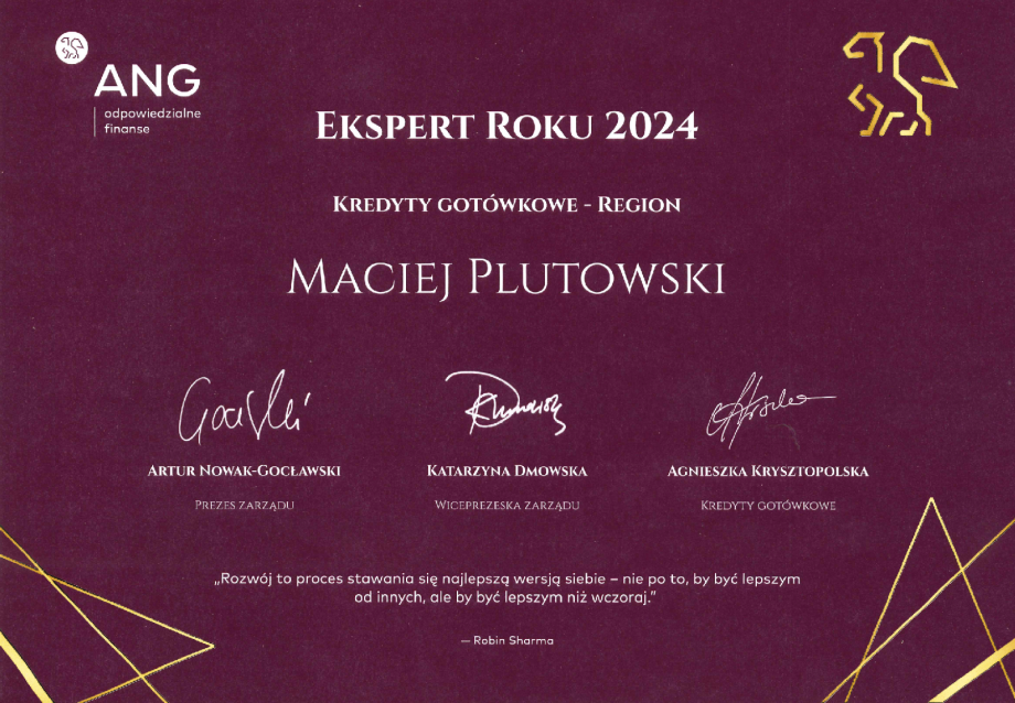 Moim zadaniem jako Eksperta kredytowego jest przeprowadzenie całej procedury kredytowej - od pierwszego spotkania, gdzie poza dużą dawną wiedzy na temat finansów omawiamy poszczególne banki, aż po uruchomienie kredytu i dalszą relacje. Cały czas pozostaje do dyspozycji moich Klientów.